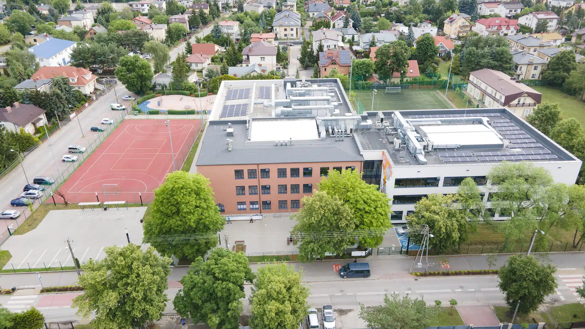 W budynku zainstalowaliśmy rozwiązania ekologiczne, które obniżą koszty bieżące funkcjonowania szkoły (m.in. panele fotowoltaiczne, wytwarzające energię elektryczną).